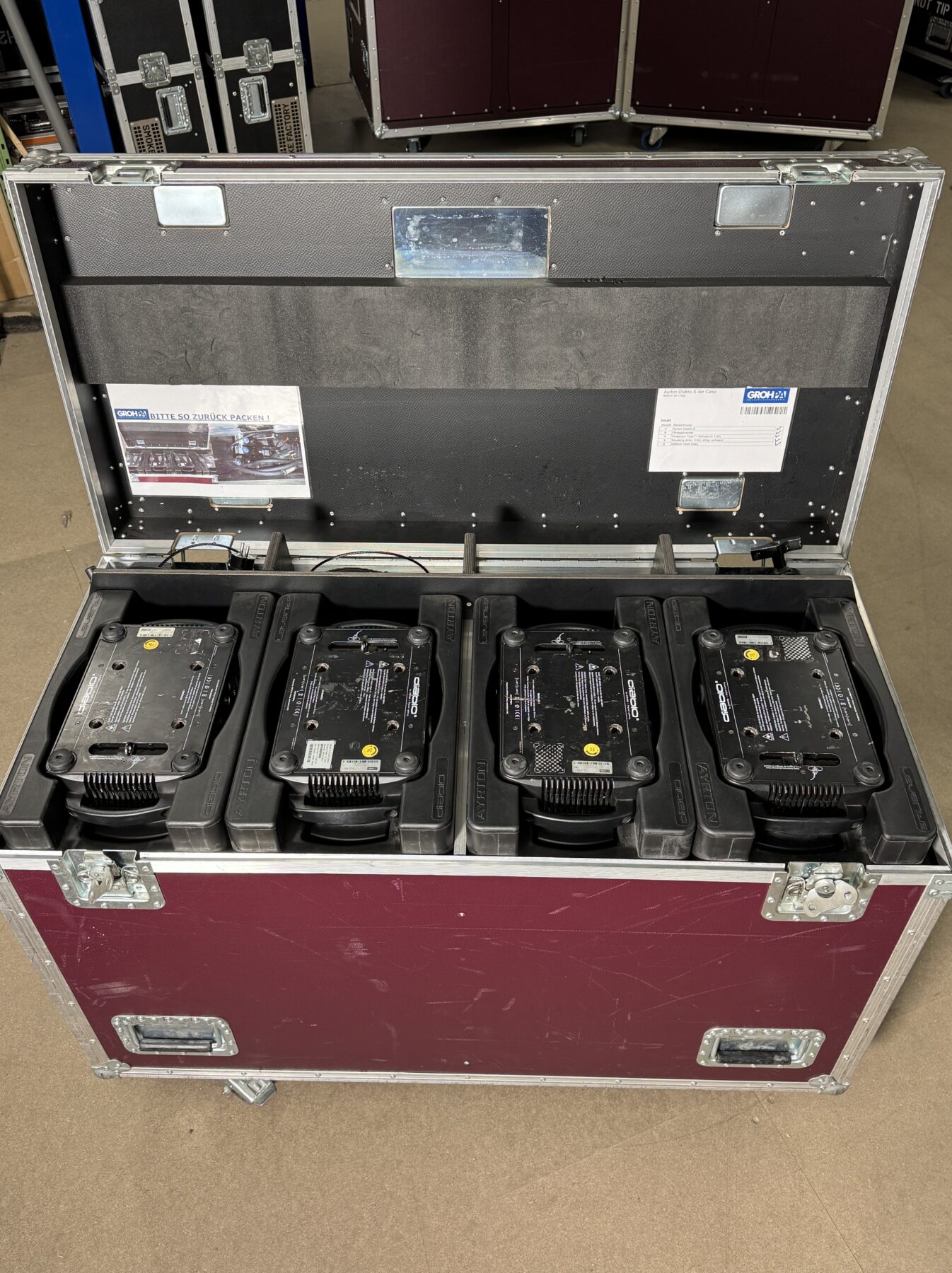 | Lieferumfang | 4x Ayrton Mistral S 4x Powercon True Anschlusskabel 8x Ayrton Omega Bracket 8x Quick Trigger Clamp 4x Saveking 4mm, 0,60m 40kg schwarz 1x Case für 4x Ayrton Mistral |