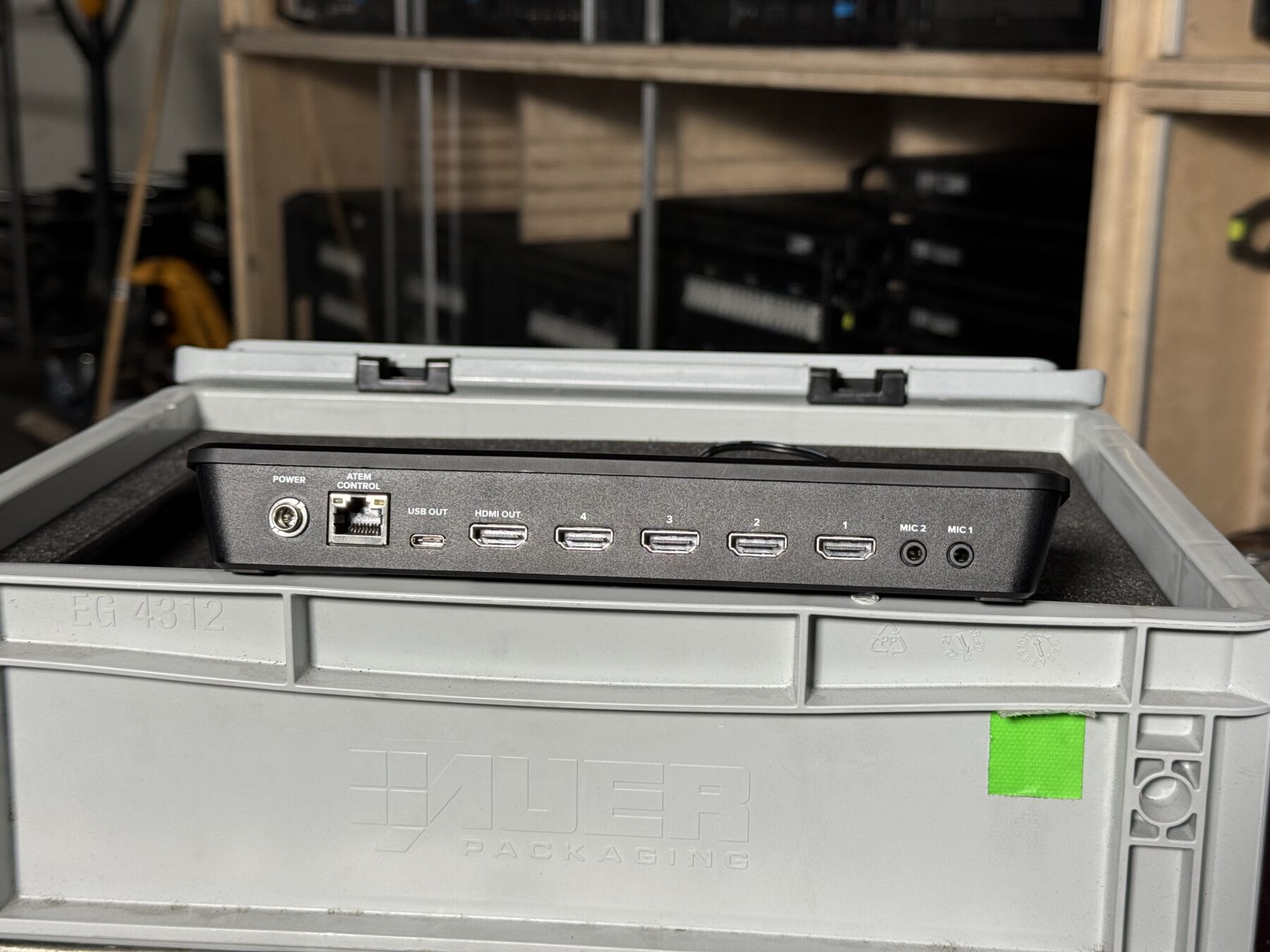 Herstellerbeschreibung: Das kompakte Videomischpult ATEM Mini Pro von Blackmagic Design ermöglicht professionelle Mehrkameraproduktionen in Echtzeit zu einem überzeugenden Preis-Leistungs-Verhältnis. Bis zu vier HDMI-Eingänge (z. B. für Digitalkameras, Computer, Spielekonsolen etc.) und zwei 3,5-mm-Audioeingänge gewährleisten eine schnelle und unkomplizierte Videoproduktion. Die Bedienung ist dabei erfreulich intuitiv. Die angeschlossenen Quellen können direkt am Gerät umgeschaltet werden und auch Effekte wie Bild-in-Bild, elegante Übergänge, Croma Keyer (besser bekannt als Green- oder Bluescreenfunktion) oder das Einbinden eigener Grafiken sind möglich. Das Ergebnis wird über die USB-C-Schnittstelle an den Computer gesendet, der den ATEM Mini Pro als Webcam erkennt – ideale Voraussetzungen für das Livestreaming auf YouTube, Facebook und Co. sowie für innovative Geschäftspräsentationen per Videochat.