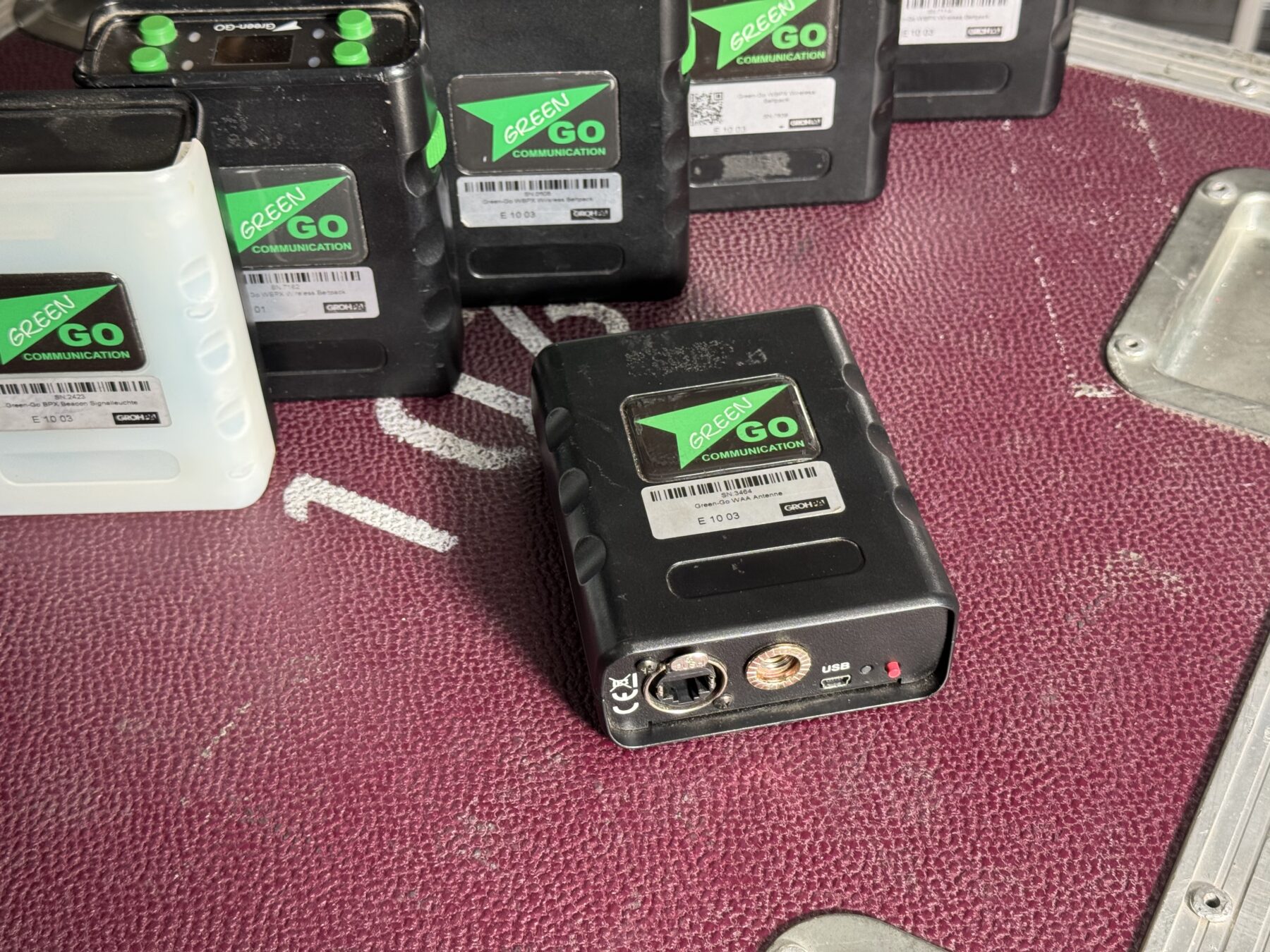 | Lieferumfang | 4x Green-Go WBPX Beltpack 1x Green-Go WAA Dect Antenne 1x Green-Go Beacon 1x Green-Go 19" 6Fach Ladegerät Optional: 1HE GängCase – siehe Bild (ohne PowerCon True1 Box) |